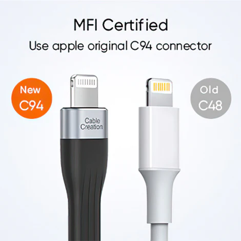 CableCreation MFi Certified Lightning to USB-C cable ensures your Apple devices are charged safely and 100% compatible with the whole iOS system. You can log in to the official Phone MFi Licensed Accessories (mfi·Phone·com) and search our brand “CableCreation” to confirm.