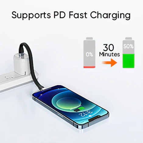 Only by using a charger with a USB-C PD interface, a CableCreation lightning cable, and a phone that can support fast charging, can the three meet the requirements to achieve the effect of fast charging the iPhone for 30 minutes and charging 50%.