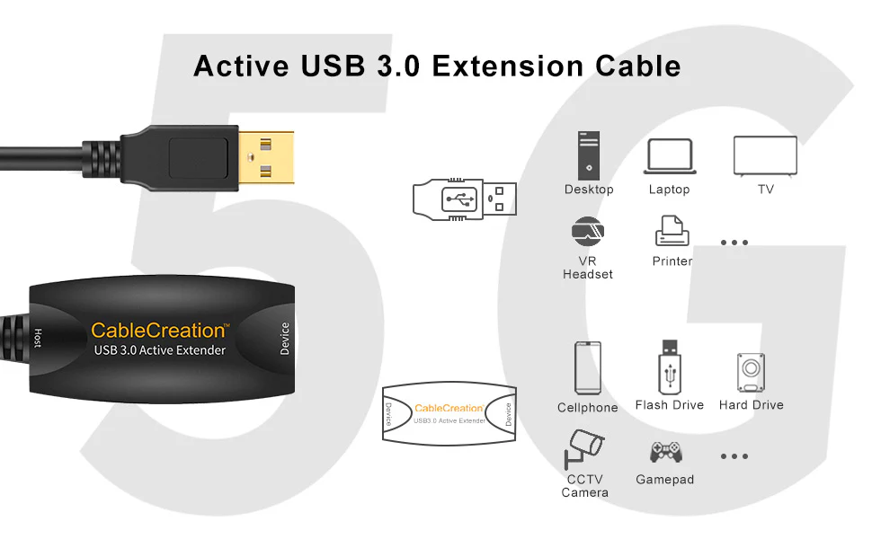 • CableCreation Active USB 3.0 Extension Cable offers an easy and inexpensive way to extend your USB connection to the computer or Mac by 16 Feet.