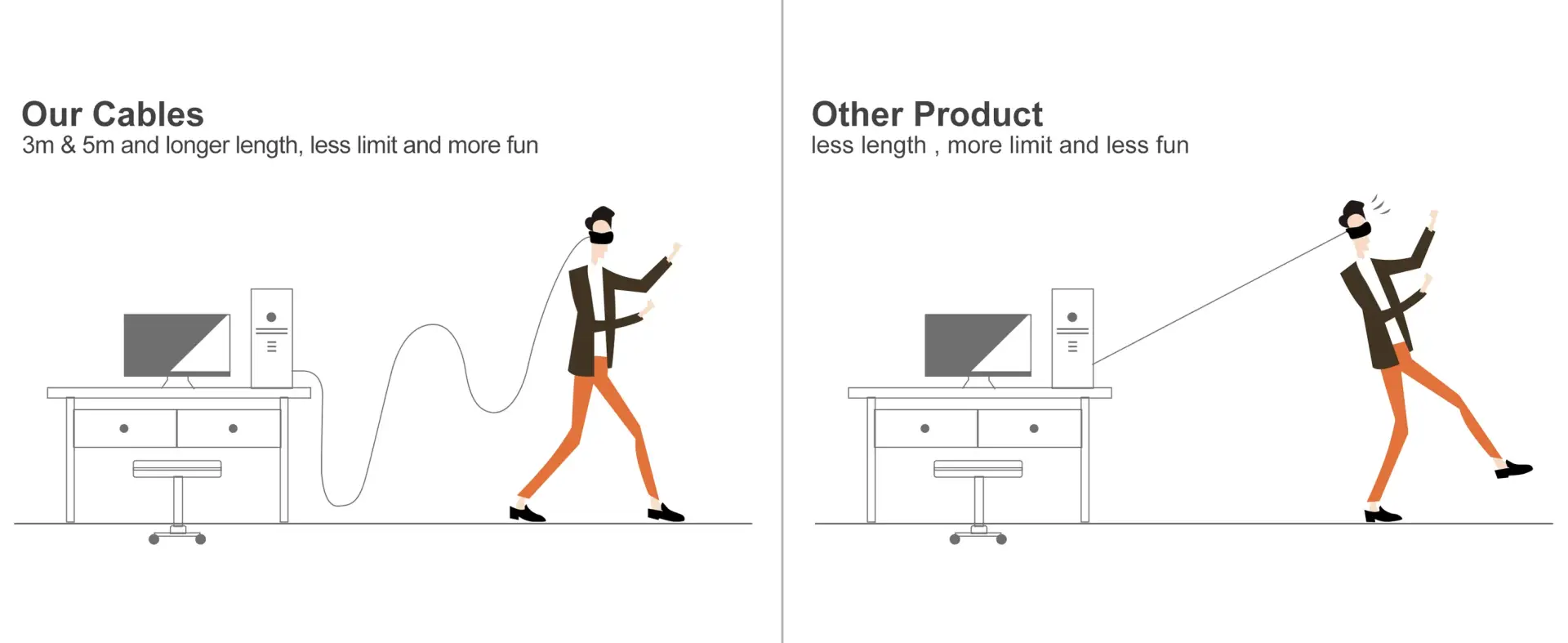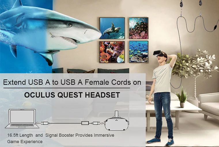 • 16 Feet long with Signal Booster ensures you enjoy playing with your Oculus Quest / Oculus Quest 2, Oculus Rift Sensor, HTC Vive, Valve index, and other VR headsets with bigger space and more fun!