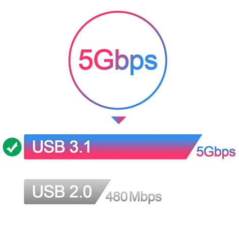 Supports data transfer rate up to 5 Gbps, allows you to transfer HD movies or files in just seconds.