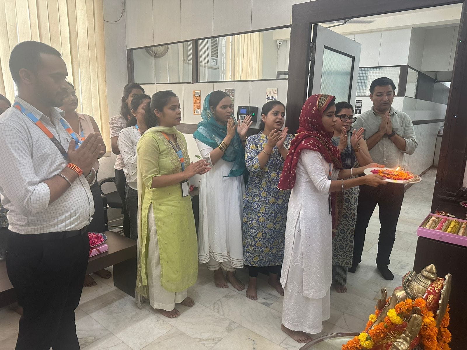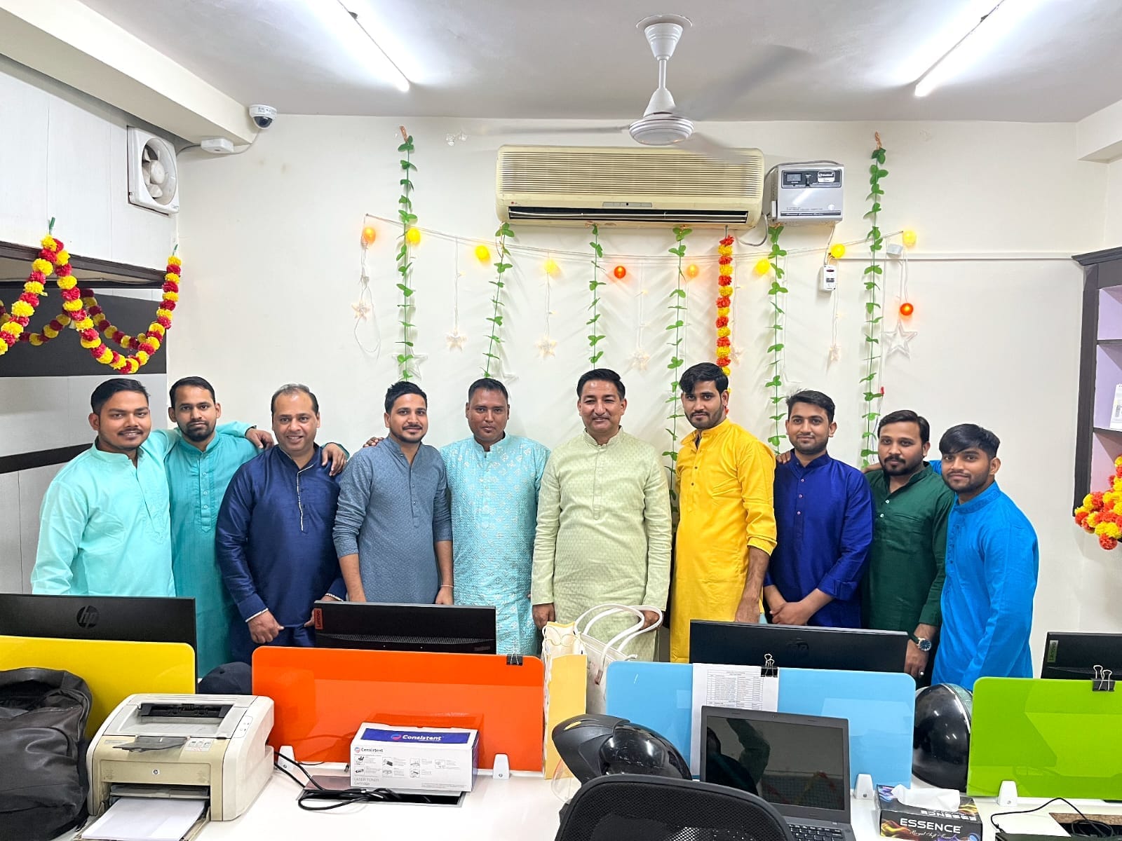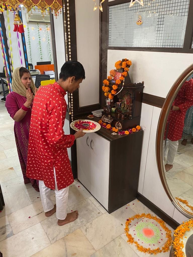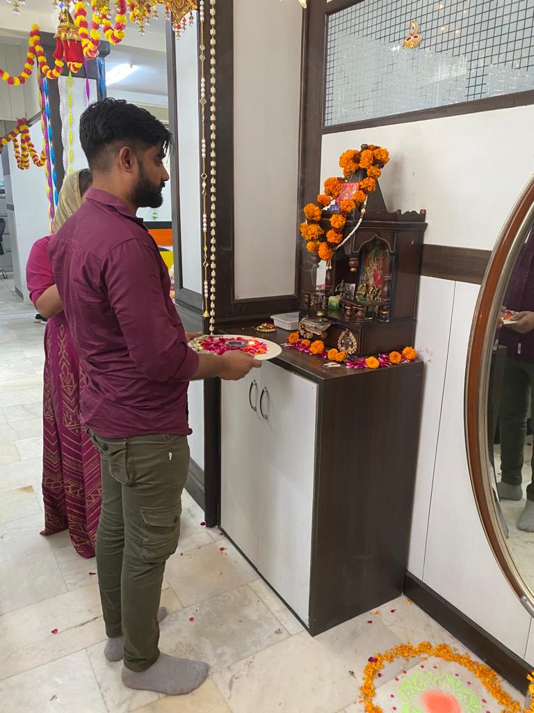 "Dive into the dazzling lights and festive spirit of Diwali with Q Connect! This image gallery showcases the joy of our office celebration. Witness the heartwarming prayer ceremony, savor the mouthwatering treats, and experience the camaraderie as the Q Connect family illuminates the season with light and happiness."