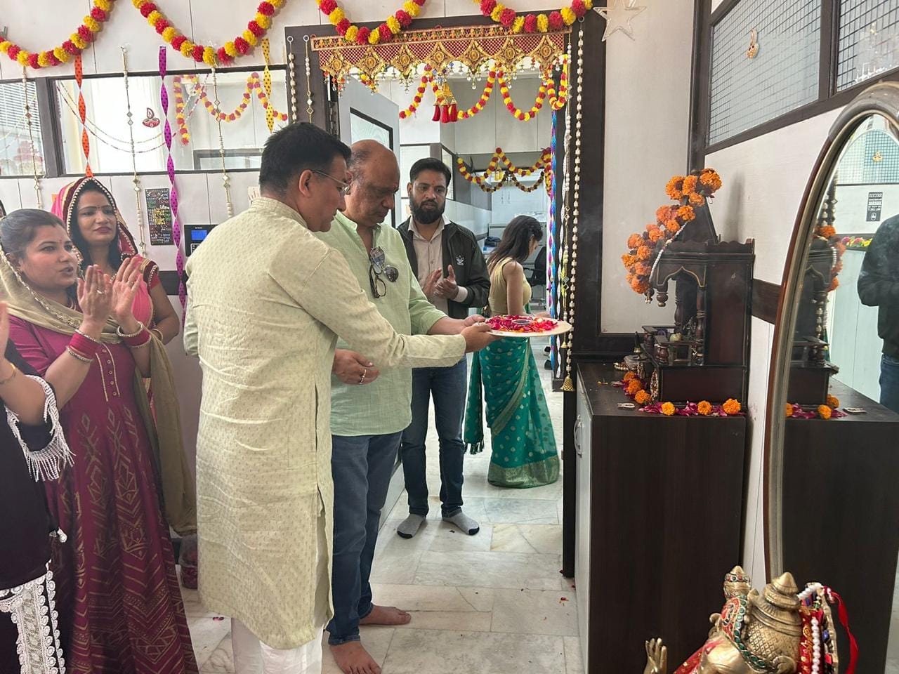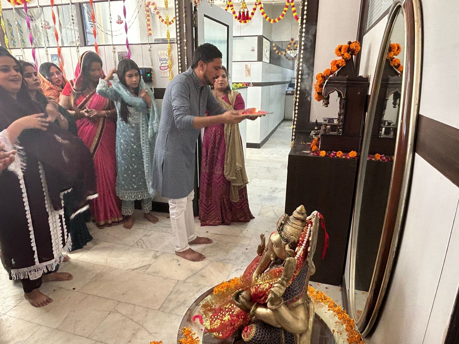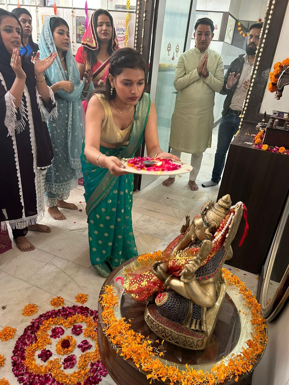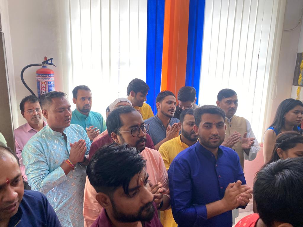 "Bask in the divine grace of Ganesh Chaturthi with Q Connect! Our image gallery grants you a glimpse into our heartfelt office prayer ceremony. Witness the devotion and togetherness of the Q Connect family as we celebrate the arrival of Ganesha, the remover of obstacles and the symbol of auspicious beginnings."
