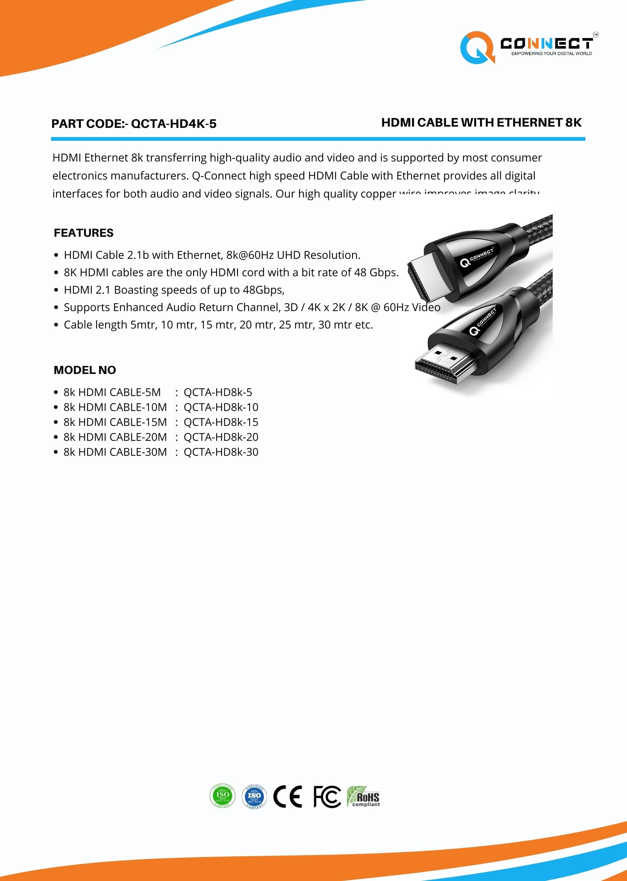 Introducing the Q Connect HDMI Cable with Ethernet 8K, a cutting-edge solution designed to deliver pristine audio and visual experiences across modern multimedia setups. Engineered for high-definition and ultra-high-definition content, this HDMI cable supports resolutions up to 8K at 60Hz, ensuring exceptional clarity and detail in your digital media playback.